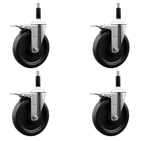 4'' Thermoplastic Rubber Wheel Swivel 1-7/8'' Expanding Stem Caster Set 2 Brakes, 4PK