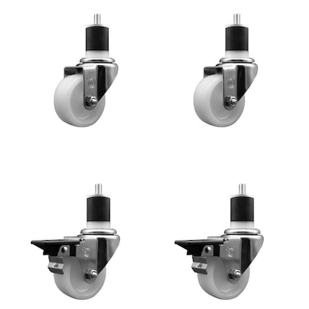 35 Inch Solid Polyurethane Wheel Swivel 58 Inch Threaded Stem Caster Set with Brake SCC