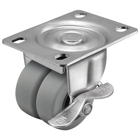 2" X 13/16" Non-Marking Rubber Thermoplastic Swivel Caster, Side Brake, Loads Up To 180 lb