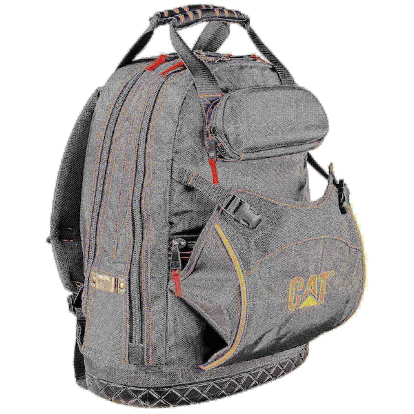 Features 31 pockets and 2 interior compartments for ultimate tool and gear storage. It's built using premium 1680D polyester weave for maximum strength and moisture resistance. Two separate interior compartments make it easy to organize your tools and gear (and feature a padded compartment for holding a laptop or tablet). An injection-molded bag bottom resists moisture, sagging, tearing and abrasions and helps keep the backpack upright when you set it down. You'll carry your loaded backpack safely and comfortably, thanks to thick back panel pads and padded adjustable shoulder straps. All pads are finished in breathable mesh fabric for increased ventilation. • OVERALL DIMENSIONS: 18 inches (W) x 14-3/4 inches (H) x 9-1/2 inches (D) • FUNCTIONAL: Designed for maximum efficiency with 28 interior pockets (including 5 extra-deep pockets for long screwdrivers); padded laptop compartment; large front pouch with quick-connect closures; hard shell exterior pocket for electronics or eye wear, large front pouch with quick-connect closures; 16 elastic tool loops; 2 adjustable heavy duty hook & loop straps and tape measure clip • DURABLE: Designed with your comfort in mind and built to meet the endless demands of harsh environments and hard-working pros who earn a living with tools • STYLISH: You'll love the looks and style of Cat tool bags and backpacks, with an embroidered logo, red zipper pulls, yellow piping and bright yellow interiors • GUARANTEED: You can buy with confidence. Cat tool bags and backpacks are protected by a 100% satisfaction guarantee • COLOR: Black and Yellow with Red Lanyards • MATERIAL: 1680 Denier Polyester Exterior and 600 Denier Polyester Interior