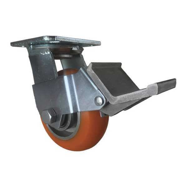 Swivel Plate Caster, w/Brake, Pedal, 5", Caster Wheel Shape: Donut Tread