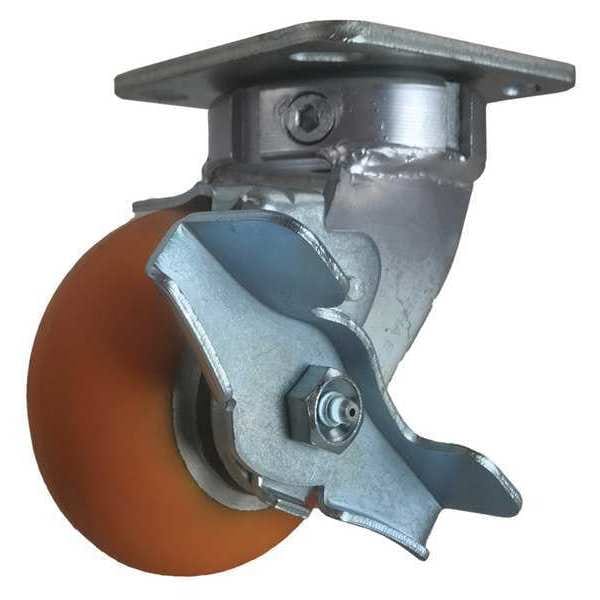 Swivel Plate Caster, w/Brake, SideStrap, 4"