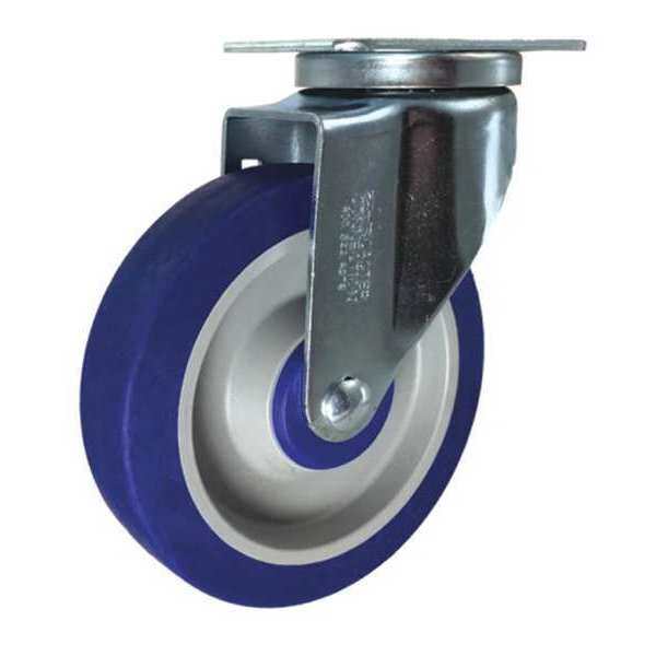 Swivel Plate Caster,Blue Rubber,5 In.