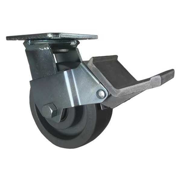 Swivel Plate Caster, w/Brake, Pedal, 5", Caster Wheel Shape: Standard