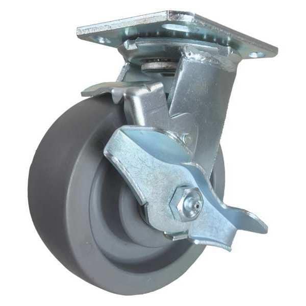 Swivel Plate Caster, w/Brake, SideStrap, 5"