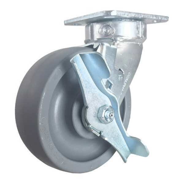 Swivel Plate Caster,w/Brake,SideStrap,6 In.