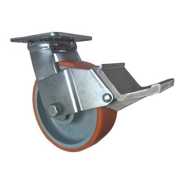 Swivel Plate Caster, w/Brake, Pedal, 6", Caster Wheel/Tread Material: Polyurethane