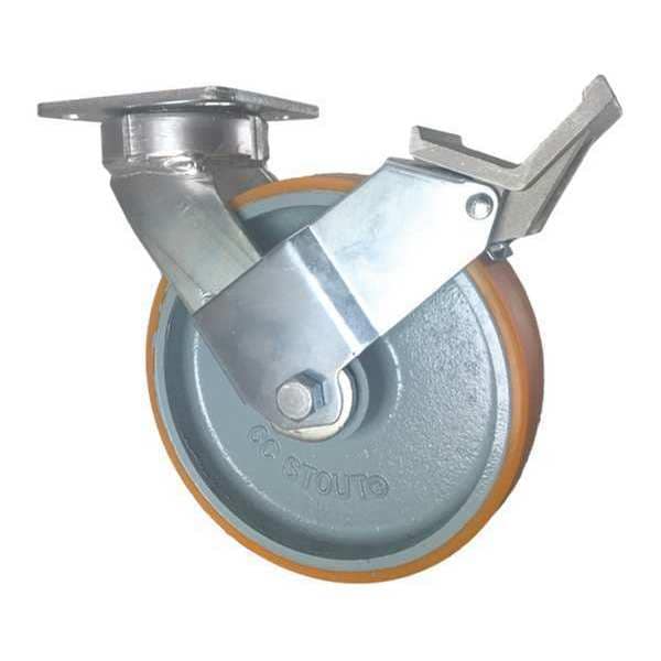 Swivel Plate Caster, w/Brake, Pedal, 8"