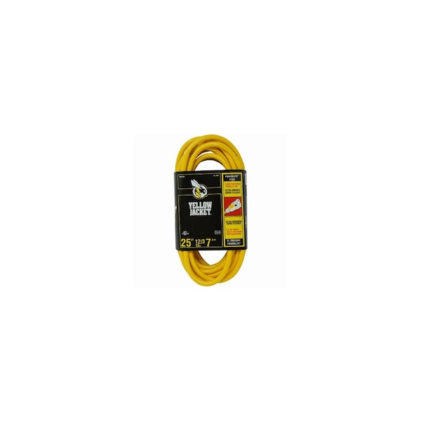 CORD EXT WITH/LT 12/3X25FT YEL Specifications: Application: For Industrial and Construction Job Site Power Includes: Connector Plug Lighted End Exclusive Yellow Jacket compound is more flexible and abrasion resistant at any temperature than standard vinyl compounds. Yellow Jacket extension cords feature a power indicator light in the female receptacle to show that the power is on.