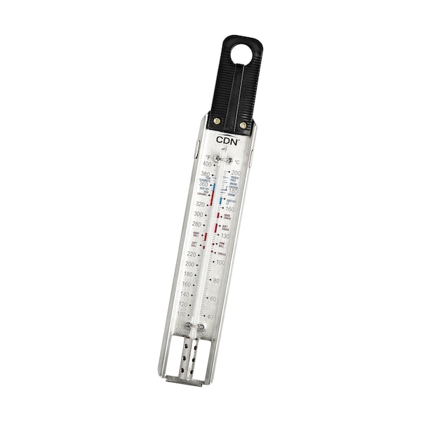 Ruler Thermometer, Metal Detectable No, Case Material Stainless Steel, Color Silver, Digit Size Not Applicable, Features 2-Way Mounting: Hang/Stainless Steel Clip, Non-Mercuric Column, Stay Cool Handle, Stainless Steel Housing, Target Range Indication, Temperature Guide on Thermometer, Waterproof, Includes Not Applicable, Lens Material Glass, Manufacturers Warranty Length 5 yr Limited, Maximum Temperature 400 Degrees F, Minimum Temperature 100 Degrees F, Overall Diameter Not Applicable