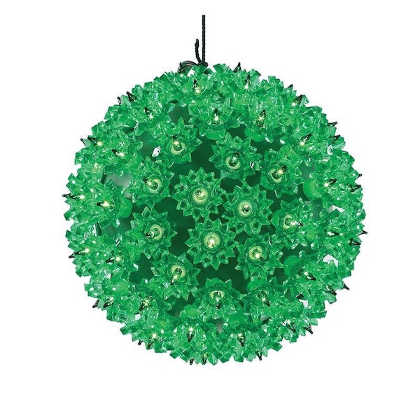 Decorate your trees indoors or out with this beautiful Starlight Sphere. The sphere measures 7.5 inches in diameter and contains 100 green T5 lights that are each positioned in their own clear crown to illuminate and reflect color.
