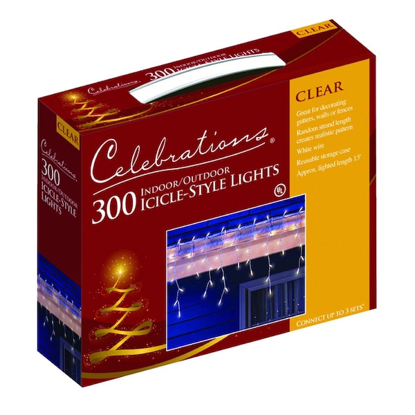 Celebrations Red Incandescent Mini Clear 300 ct Icicle Christmas Lights 17 ft.