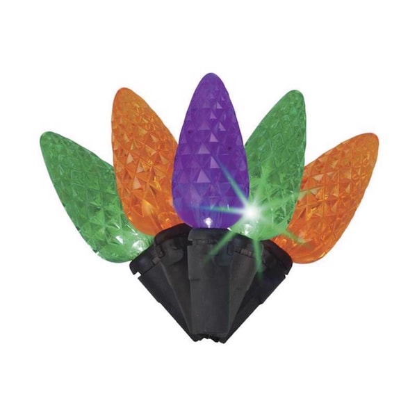 Brighten up your Halloween celebrations with 100-light LED C6 string lights. These striking orange purple and green lights bring a festive and eerie glow to your indoor and outdoor spaces. Featuring energy-efficient LED bulbs they provide long-lasting and brilliant illumination perfect for creating a spooky atmosphere. Whether you're decking out your porch or lighting up your haunted house these string lights are the perfect addition to your Halloween decor.