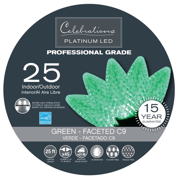 Celebrations Platinum LED C9 Green 25 ct String Christmas Lights 24 ft.