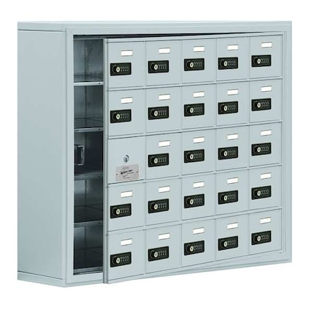 Cell Phone Locker, 35 3/4 in W, 8 3/4 in D, 29 3/4 in H, (5) Tier, (5) Wide, Silver