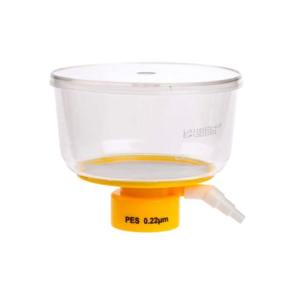 Celltreat 500ml bottle top filter, 0.22m pes filter, 90mm diameter, sterile, 24/case features: 500ml filters feature expanded 90mm diameter membrane to increase flow and reduce clogs for faster filtration 90mm diameter membrane has 44% more filtration area than previous membrane easy-to-read molded graduations marks on bottle top filter bold easy-to-read printed membrane and pore size for easy identification curved bottle design for easy handling printed lot number and expiration date on every bottle top improved filter support provides faster flow rates angled hose barb adapter fits three size hose diameters and prevents the filter from tipping polyethersulfone (pes) membrane is for high flow and low binding 0.22m pes membrane is the first choice for sterile filtration of cell culture media bottle top filters fit on celltreat solution bottles or other standard 45mm threaded solution storage bottles bottle top filters do not include solution bottles