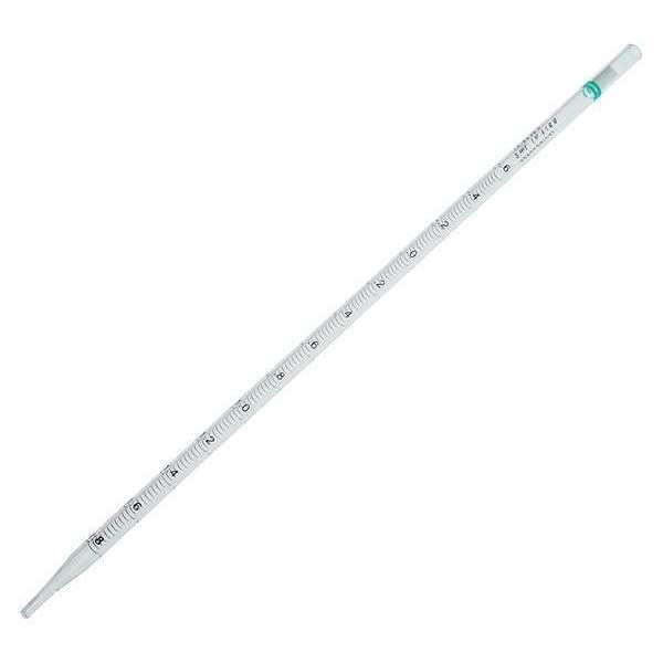 Serological Pipette, Serological Pipet Individually Wrapped, Capacity 2 mL, Graduation Range 0.02 to 2mL, Material of Construction Plastic, Graduation Subdivisions 0.02 mL, Negative Graduations -0.6 mL, Tolerance 2 Percent, Length 27.2 cm, Band Color Green, Class A, Sterile, Standards ASTM E-934, Package Quantity 600