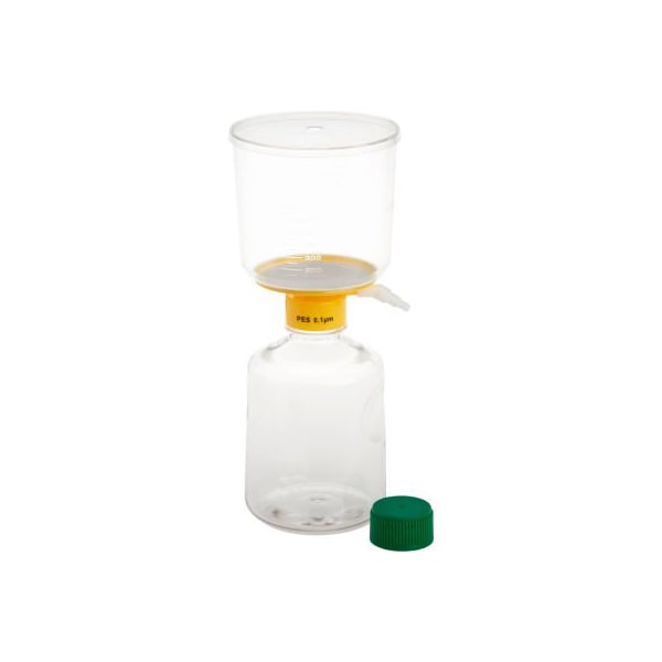 Features: 500ml filters feature expanded 90mm diameter membrane to increase flow and reduce clogs for faster filtration easy-to-read molded graduations marks on bottle top filter bold easy-to-read printed membrane and pore size for easy identification curved bottle design for easy handling printed lot number and expiration date on every bottle top improved filter support provides faster flow rates angled hose barb adapter fits three size hose diameters and prevents the filter from tipping polyethersulfone pes membrane is for high flow and low binding 0.10m pes membrane ideal for mycoplasma removal 0.22m pes membrane is the first choice for sterile filtration of cell culture media 0.45m pes membrane ideal for solution clarification filter systems include bottle top filter and solution bottle with cap bottle top filter available separately