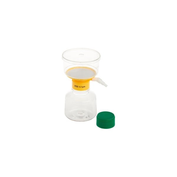 Features: 500ml filters feature expanded 90mm diameter membrane to increase flow and reduce clogs for faster filtration easy-to-read molded graduations marks on bottle top filter bold easy-to-read printed membrane and pore size for easy identification curved bottle design for easy handling printed lot number and expiration date on every bottle top improved filter support provides faster flow rates angled hose barb adapter fits three size hose diameters and prevents the filter from tipping polyethersulfone pes membrane is for high flow and low binding 0.10m pes membrane ideal for mycoplasma removal 0.22m pes membrane is the first choice for sterile filtration of cell culture media 0.45m pes membrane ideal for solution clarification filter systems include bottle top filter and solution bottle with cap bottle top filter available separately