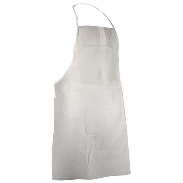 Bib Apron, Polypropylene, Serged, 1 mil, 36 in, White, Universal, 100 PK