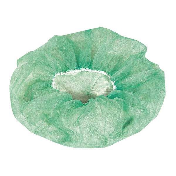 Bouffant Cap, Polypropylene, 21 in Dia., Green, M, 100 PK