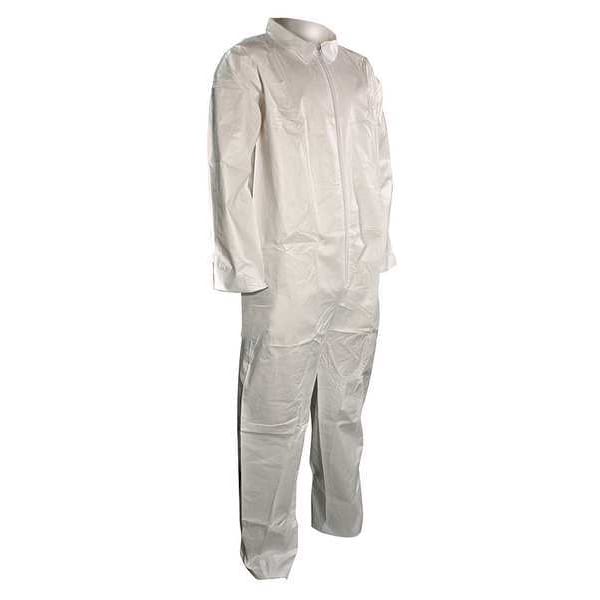 Disposable Coverallss, Collared, 2XL, Microporous Film Laminate, Open Wrist, Open Ankle, White