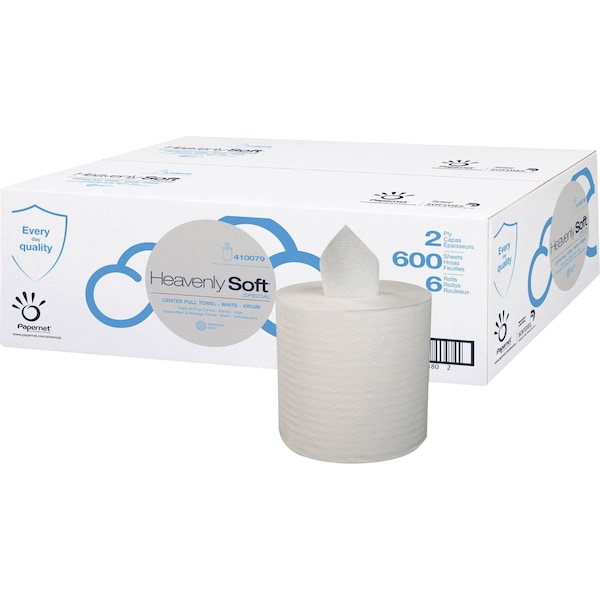 Center Pull Paper Towels, 2 Ply, 600 Sheets, White, 6 PK