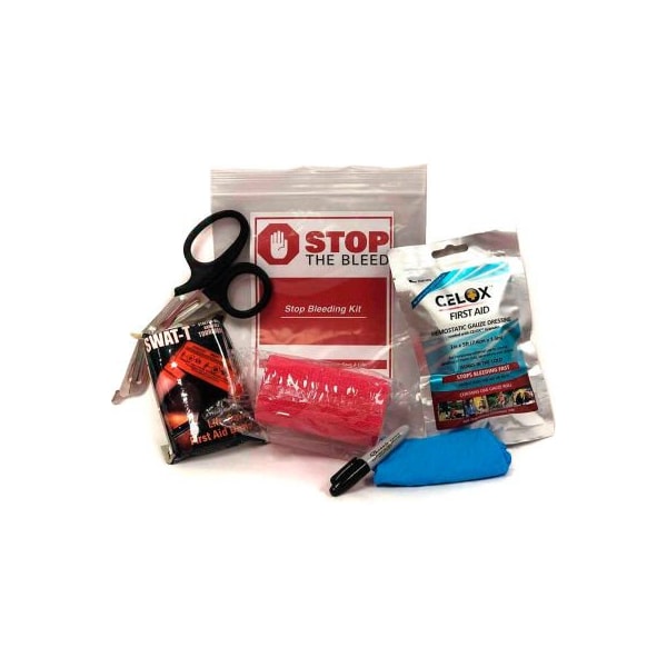 Celox biologistex isbkswt001 individual stop bleeding kit, hemostatic gauze biologistex stop bleeding kit contains essential and easy to use life saving products. A person who is bleeding can die from blood loss within five minutes. This versatile kit can be used for many applications including everyday injury to active shooter situations. Kit contains celox, the only officially licensed hemostatic dressing with the department of defense for the national stop the bleed program. Be prepared for a bleeding emergency wherever you are. kit contains celox hemostatic 5' x 3 gauze roll 1 nitrile glove pairs 2 pressure dressing 1 swat tourniquet 1 permanent marker 1 instruction insert 1 high grade resealable bag 1