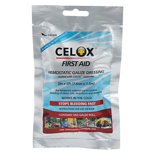 Gauze Roll, Dressing Length 5 ft, Dressing Width 3 in, Water Resistance Not Water Resistant, Sterility Sterile, Unitized Unitized, Fastener Included Fastener Not Included, Number of Units Included 1, Package Height 5 in, Package Width 8 in, Package Length 1 in, Compatible Manufacturer Part Number Not Applicable, Compatible Grainger Part Number Not Applicable, Standards Class III-CE [Europe], DOD, FDA, FDA-510k, NATO, Latex Content Latex Free, Dressing Color Beige, Dressing Material Chitosan