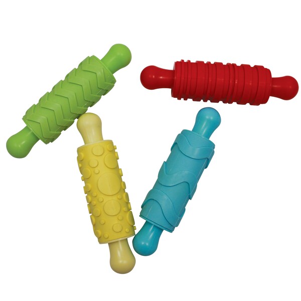 You'll be "on a roll" with paint and clay craft activities as easily as using a rolling pin with this great set of 4 designs. The clever styles include a dot pattern of various sizes in a random array, a wave pattern, zigzag squiggles, and parallel, multi-width stripes. All rollers are 7" long and 1.5" in diameter and made of very durable plastic and hard rubber. Soap and water are all you need for an easy clean-up. Both the young and the young-at-heart will be very creative while developing coordination skills and artistic interests! Includes 4 rollers per pack. For ages 3 and up.