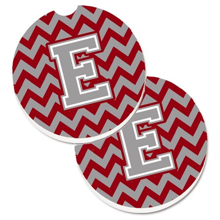 Letter E Chevron Crimson and Grey Set of 2 Cup Holder Car Coaster