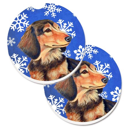 Dachshund Winter Snowflakes Holiday Set of 2 Cup Holder Car Coaster