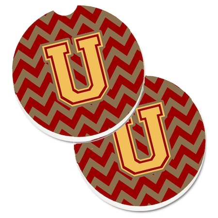 Letter U Chevron Garnet and Gold Set of 2 Cup Holder Car Coaster