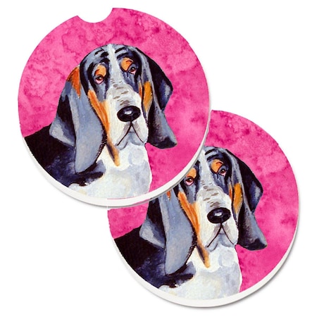 Pink Basset Hound Set of 2 Cup Holder Car Coaster