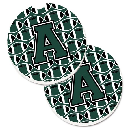 Letter A Football Green and White Set of 2 Cup Holder Car Coaster