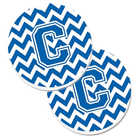 Letter C Chevron Blue and White Set of 2 Cup Holder Car Coaster