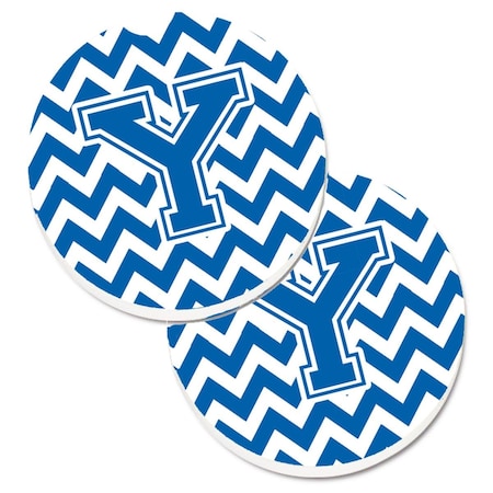 Letter Y Chevron Blue and White Set of 2 Cup Holder Car Coaster