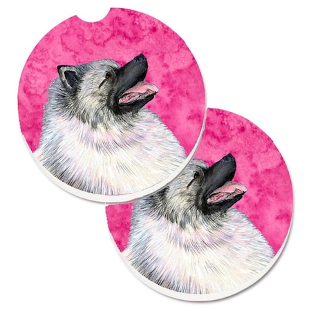 Pink Keeshond Set of 2 Cup Holder Car Coaster