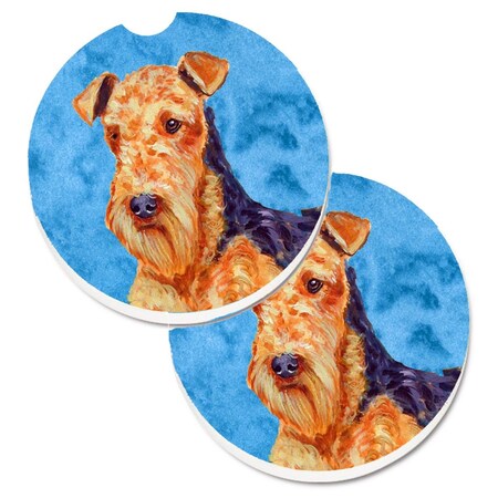 Blue Airedale Set of 2 Cup Holder Car Coaster