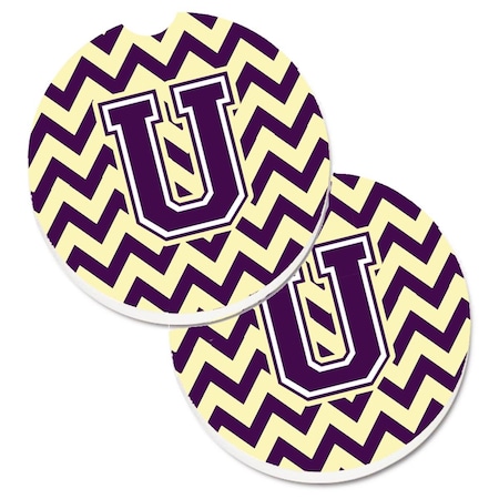 Letter U Chevron Purple and Gold Set of 2 Cup Holder Car Coaster
