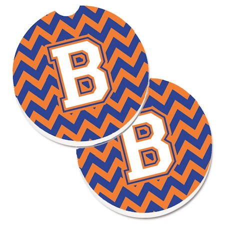 Letter B Chevron Blue and Orange No.3 Set of 2 Cup Holder Car Coaster