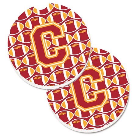 Letter C Football Cardinal and Gold Set of 2 Cup Holder Car Coaster