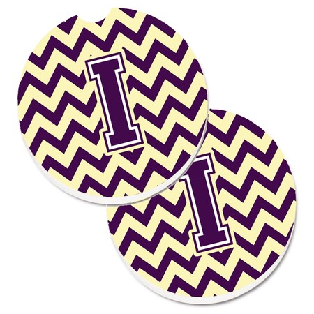 Letter I Chevron Purple and Gold Cup Holder Car Coaster, PK2