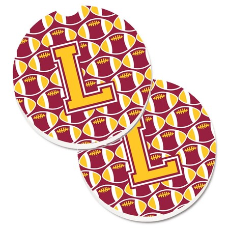 Letter L Football Maroon and Gold Set of 2 Cup Holder Car Coaster