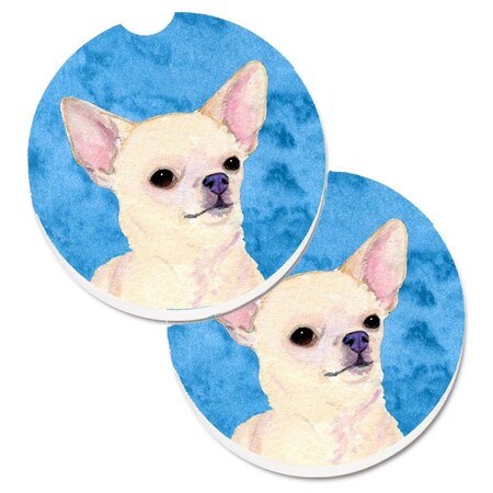 Blue Chihuahua Set of 2 Cup Holder Car Coaster