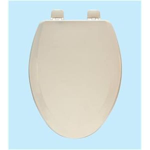 Luxury solid plastic seat for elongated bowl. Top-mount hinge for easy installation. Impact-absorbing hinges. Extended back with concealed hinge. Integrally-molded permanent and sanitary color-keyed bumpers won't fall off. Corrosion-free hardware. Withstands cleansers strong chemicals. Color: Biscuit. Material: Plastic.
