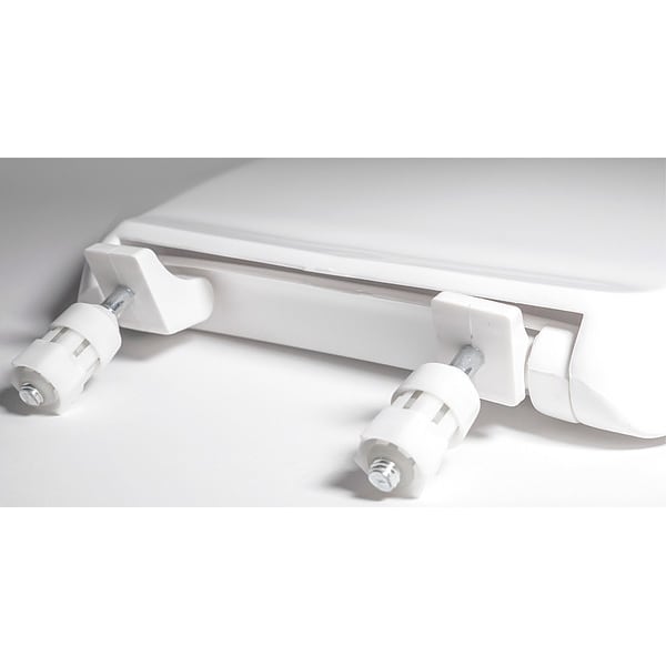 Toilet Seat, For Bowl Shape Round, Toilet Seat Type Standard, Front Type Open, Includes Cover Cover Included, Color White, Hinge Material Stainless Steel, Hinge Design External Check, Seat Height 2 in, Bolt to Seat Front 16 1/2 in