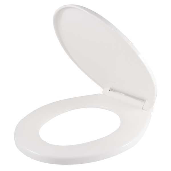 Toilet Seat, For Bowl Shape Round, Toilet Seat Type Standard, Front Type Closed, Includes Cover Cover Included, Color White, Hinge Material Plastic, Hinge Design Lift-Off, Seat Height 1 3/4 in, Bolt to Seat Front 16 5/8 in