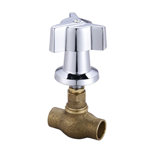 This CENTRAL BRASS Tile Stop Valve has a polished chrome finish, weighs 1.55 lbs, and has an overall width of 2.25". It has a commercial style, CXC connection type, 3 point handle style, and a 3/4" connection size. The handle is included.