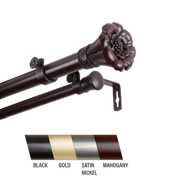 Flora 1 in. Double Curtain Rod, 28-48 in. - Mahogany